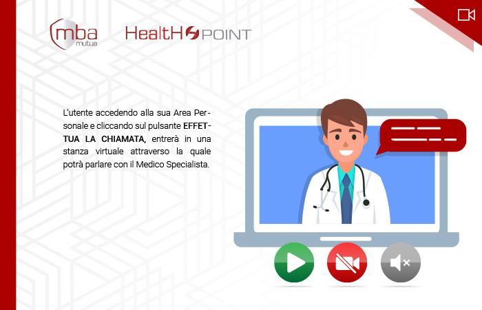 Per consentire di affrontare le diverse problematiche sanitarie generalistiche o specialistiche che possono emergere, Health Point, in collaborazione con Health Italia SpA, vuole fornire uno strumento di ausilio e di supporto. Health Point mette a tua disposizione la possibilità di consultare un medico per via telefonica o con una Televisita al fine di supportare le tue necessità sanitarie con l’ausilio eventuale di strumenti di autodiagnosi.